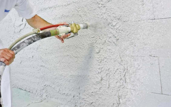Шпаклевка наносится на стены с помощью шпаклевочной станции, которая сама замешивает нужную смесь. Станция обеспечивает постоянное помешивание раствора, не позволяя образовываться комкам
